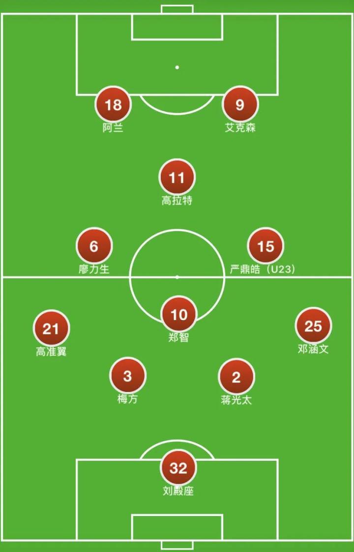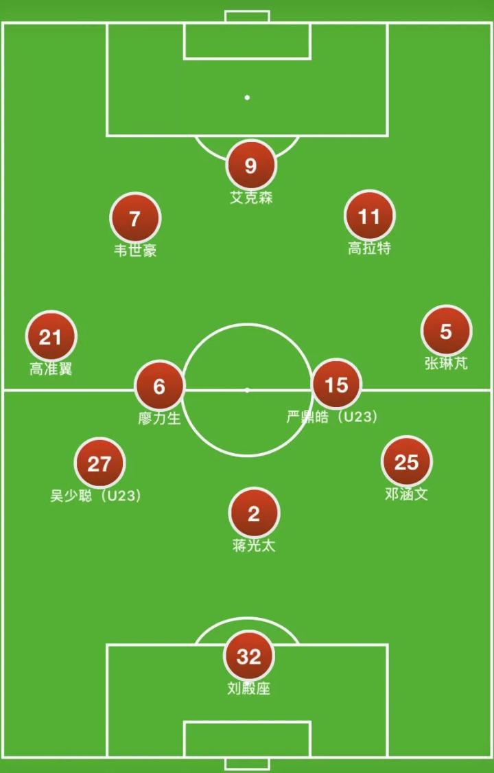 (对阵深圳队的首粒进球,广州队进攻从右路向左路转移。高准翼的位置是从中后场后插上至前场边路位置)