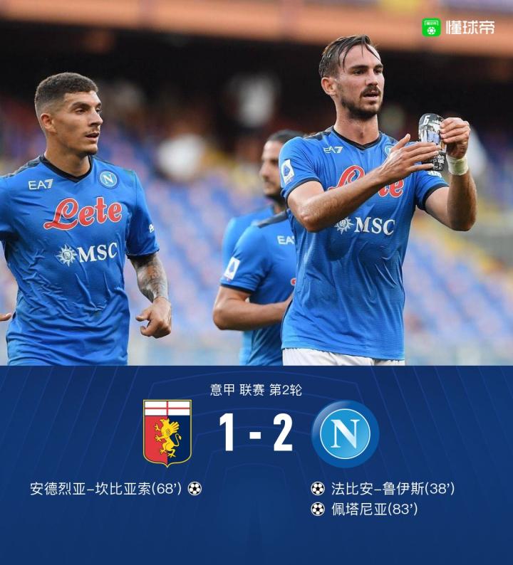 那不勒斯客场2-1热那亚,法比安-鲁伊斯破门,佩塔尼亚绝杀