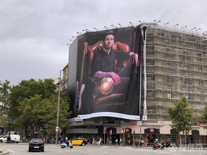梅西合作品牌活动,巴塞罗那市中心出现梅西巨幅海报
