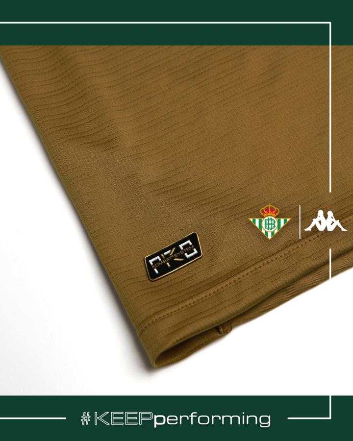 插肩衣袖以及上面的花纹,胸前的俱乐部徽章以及Kappa Omini标识以及球衣广告均以象征俱乐部传统的绿色呈现。球衣衣领内的绿色徽章源于2019/20赛季与塞维利亚的同城德比战中主场死忠看台所展示的巨型TIFO。