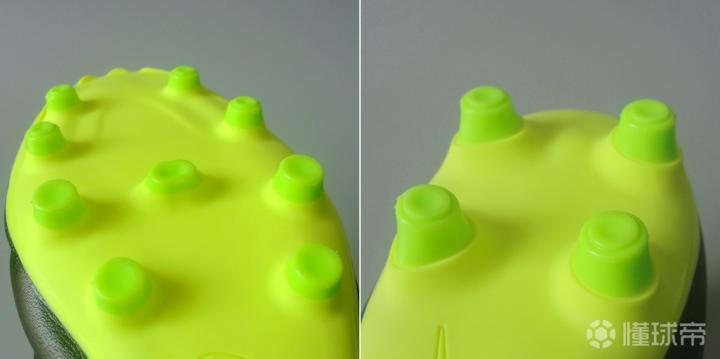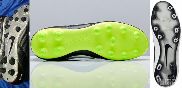这个大底真的有一段历史了,最早大约可以追溯到2000年的Tiempo Premier的FG-E大底,彼时的Tiempo Premier进行了一次大的改款,由用了很久的相当于FG或者HG的“m”底改成了FG-E,就是今天Nike Premier大底的雏形。很明显今天的Premier鞋钉设计还吸取了传奇部分因素,前掌钉子和传奇有一些神似,尤其是启动钉长条形设计,在FG-E上它是圆形的,内侧的4颗钉子也和传奇是一样的,FG-E上这里是3颗。鞋钉长度前掌0.95cm,后掌1.35cm,偏短,中上等人草上使用没有压力。