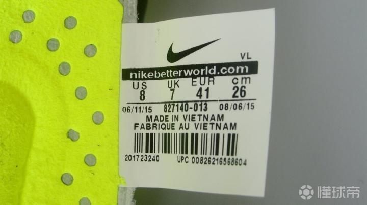 产地越南,右上角的VL是工厂代号,做工一般。在此怀念一下Nike传统足球鞋国产时期一直为我们奉献精品的SF厂。