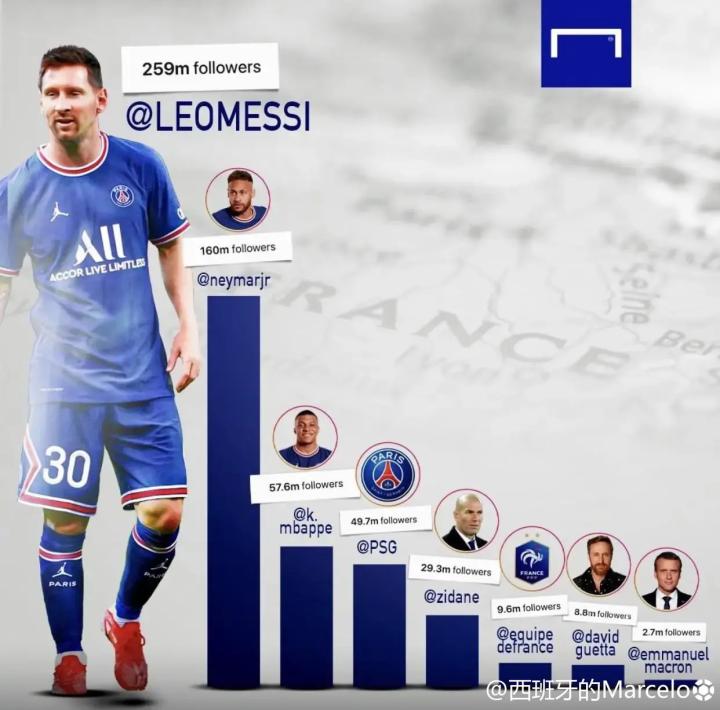 丨足球图片丨Goal:C罗和梅西不仅是足球中的两...西班牙的Marcelo @懂球帝2021-09-03 15:08丨足球图片丨Goal:C罗和梅西不仅是足球中的两个王者,也是社交媒体上的王者! C罗目前是世界上ins粉丝最多的人,在他身后的是他所在的联赛、俱乐部、英国明星、英国皇室等。 梅西的粉丝数也遥遥领先,他的粉丝比任何一个法国的名人都要多。展开更多