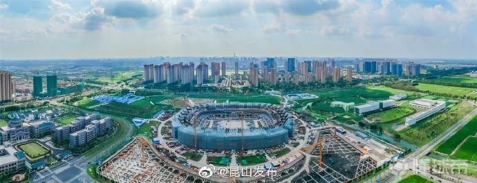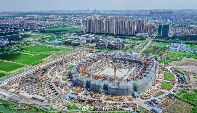 昆山足球场主体结构10月底封顶,计划2022年12月竣工