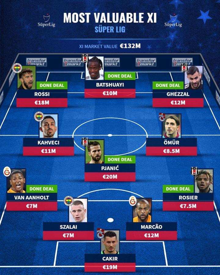 德国转会市场网站评选了土超球员最贵阵容,其中夏窗刚转投贝西克塔斯的皮亚尼奇领衔,此外巴舒亚伊也位列其中。