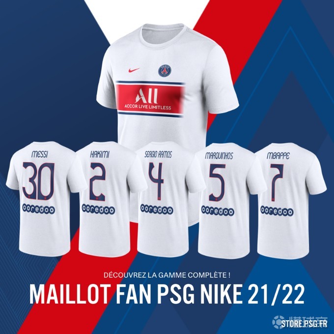 9月3日,巴黎圣日耳曼官方发布了21/22赛季的“球迷服(Fan football shirt)”,这件衣服的定位是“日常T恤与球衣的结合”,可以将自己喜爱球员的名字与号码印在后背,与球衣非常相似。