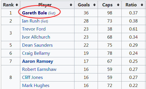 我先来说一下为威尔士鞠躬尽瘁的贝尔。贝尔的职业生涯是比较完美的,多次问鼎欧冠,率领威尔士历史性闯进欧洲杯四强,威尔士国家队历史射手王,这些成绩和荣誉让他成为威尔士队历史第一人争议不大。