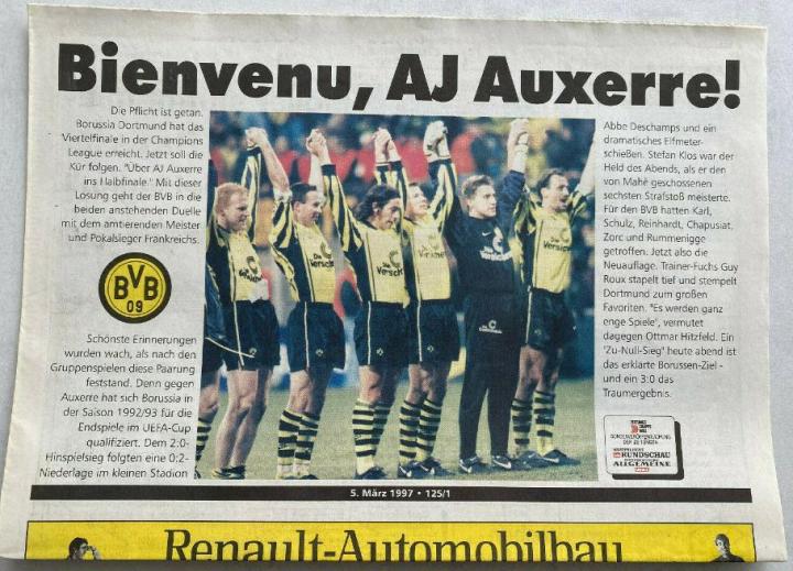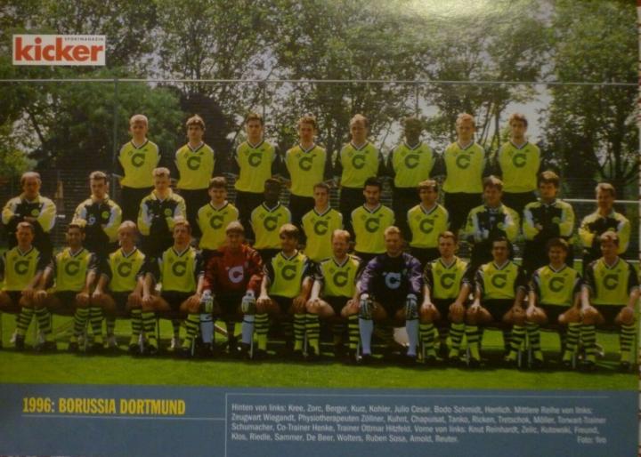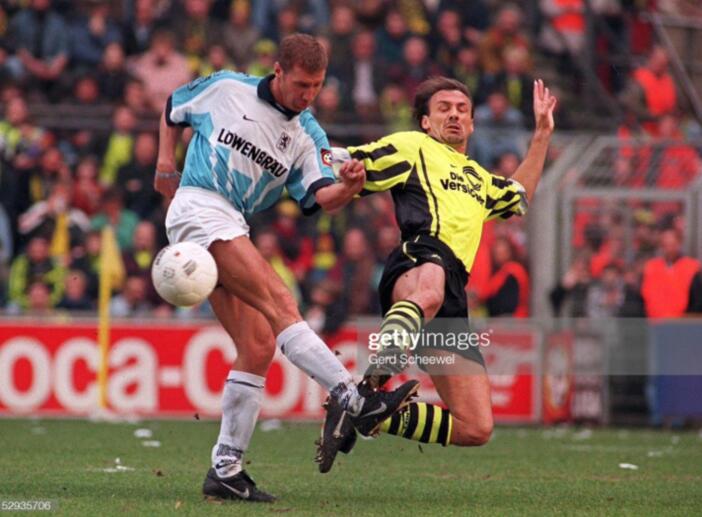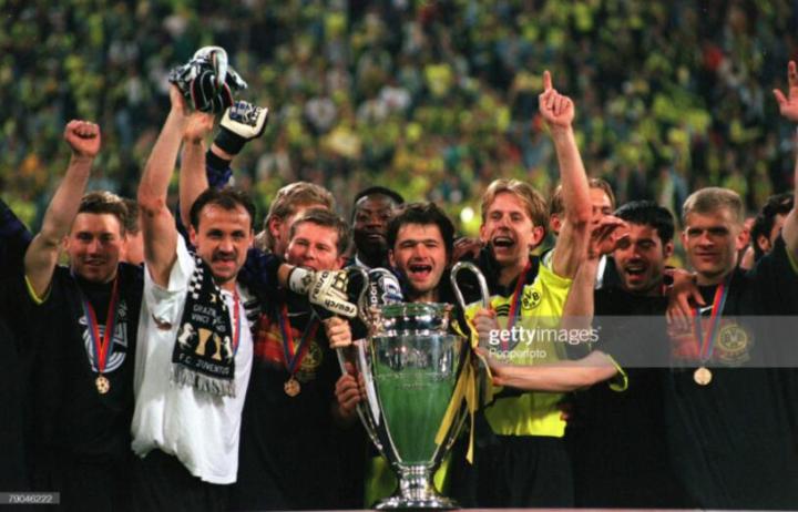 1996年欧洲杯,德国国家队主力中卫科勒尔在首场和捷克的比赛中受伤,幸运的是,德国队最终在决赛中金球绝杀捷克,获得了冠军,虽然仅仅出场了14分钟,但德国老将在荣誉册上,又多了一座欧洲杯冠军,此时31岁的科勒尔离职业生涯荣誉大满贯只差一座欧冠冠军。96-97赛季,兵强马壮的多特蒙德迎来了最好的机会。