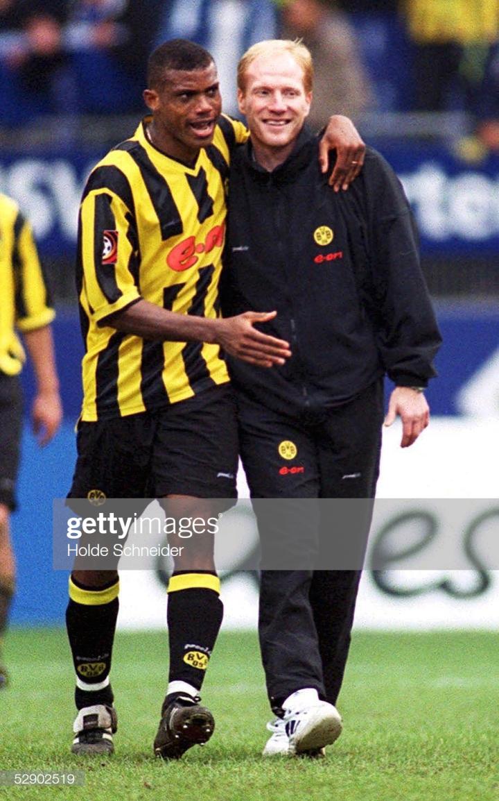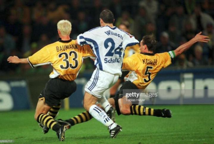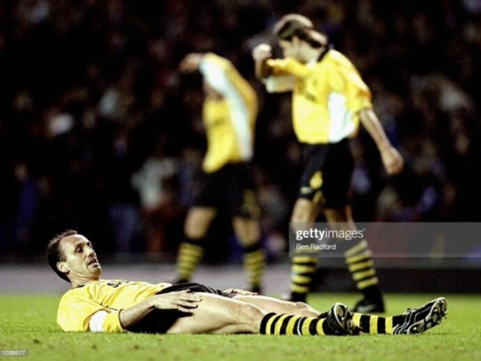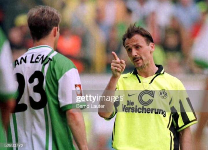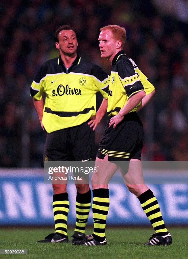 但在获得欧冠冠军后,多特蒙德队队长,萨默尔的膝伤已经非常严重,甚至没有参加颁奖典礼。作为球队的灵魂人物,萨默尔的缺席,让多特蒙德实力受到了巨大的损失。97-98赛季,科勒虽然竭尽全力,甚至在赛季打入三球,但依旧无法止住大黄蜂的颓势,刚刚站上欧洲之巅的多特蒙德,直接坐上过山车,跌落到了德甲第十名。