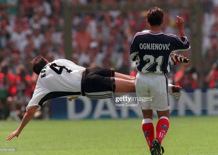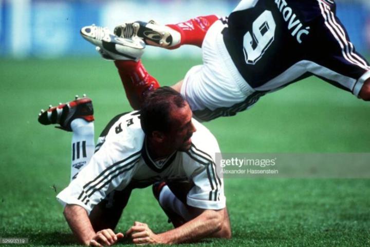 进入淘汰赛后,德国队利用高空轰炸逆转2比1击败了墨西哥队,顺利挺进八强,四分之一决赛对手是黑马克罗地亚。那场比赛可以说是德国足球的一场噩梦,和科勒尔搭档沃恩斯在半场结束前因为被红牌罚下,最终德国战车被克罗地亚击毁,德国足球的黄金时代也告一段落。世界杯结束后,科勒尔宣布退役,结束了自己的国脚生涯,虽然他堪称上世纪末最强盯人中卫,但他在105场国家队比赛中,也仅仅吃到了10张黄牌1张红牌,可见其防守技术的精湛。