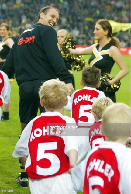 但这并不是科勒尔职业生涯最后一战,因为那个赛季,多特蒙德杀入了欧洲联盟杯的决赛,36岁的老将科勒尔还在那个赛季和速度极快的金童欧文交手过。而他们的决赛对手是荷甲费因诺德俱乐部。那场比赛两队势均力敌,但是在上半场30分钟,多特蒙德遭受重创,小将里肯回传给老将科勒尔挖坑,丹麦人托马森截得皮球杀入禁区,科勒尔不得已在点球点附近铲球放到托马森,被主裁判红牌罚下,外加点球套餐。最终多特蒙德2比3惜败,科勒尔职业生涯最后一战以这样一种尴尬的方式离开了赛场。