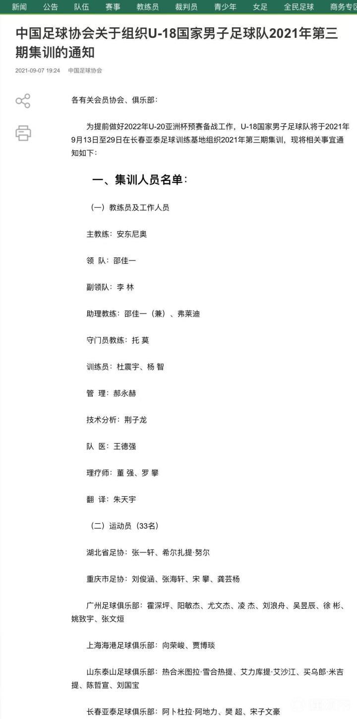 杜震宇将重回长春亚泰足球训练基地,以国青U18教练组成员的身份做贡献。 2021年9月7日,足协发布了《中国足球协会关于组织U-18国家男子足球队2021年第三期集训的通知》。此次集训将在9月13日至29日于长春亚泰足球训练基地进行。 杜震宇将同邵佳一、杨智一道,成为U18国青教练组成员。长春亚泰队有阿卜杜拉·阿地力、樊超、宋子文豪三名球员入选。 杜震宇对这个年龄段(03、04)的国字号并不陌生,他曾于2021年初成为U18国家男子足球队选拔训练营教练团队的一员。04年龄段的许多球员对亚泰基地也十分熟悉——2020年,亚泰基地承办了U16国少(04年龄段)的第四期集训。 祝杜震宇指导工作顺利,为中国足球贡献力量!