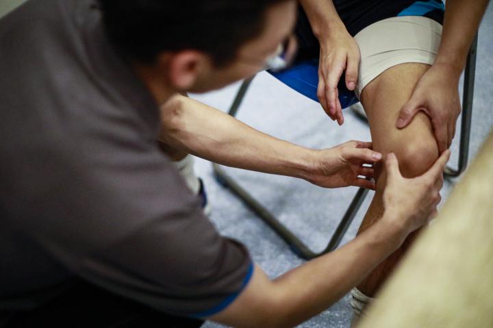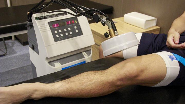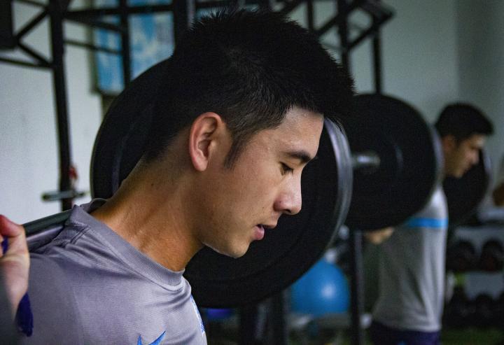 每次训练前,曾超会先接受理疗,比如刮痧或微波、超声波等仪器治疗,之后便开始康复性力量训练。