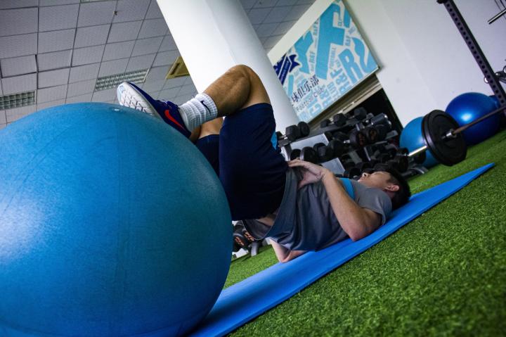 Leo说:“在之前的三周主要进行了膝关节稳定和本体感觉训练,辅以下肢力量练习。现在主要是恢复下肢力量,强化膝关节稳定性,锻炼膝、髋关节周围神经肌肉,加强运动控制。”根据计划,曾超会进行硬拉、深蹲和快速伸缩复合训练等力量训练以及BOSU球(平衡半球)和瑜伽球上平衡稳定训练。