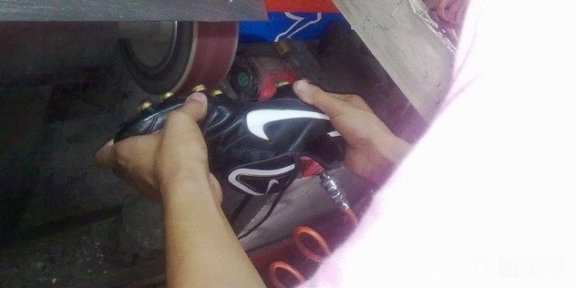 既不满足于美工刀的原始、费力,又不愿意购买电磨机的朋友,可以在家附近找一个砂轮机(台式的、手砂轮都行)借用一下,标记好磨钉长度,稳定把持住球鞋,也能省时省力地完成磨钉。