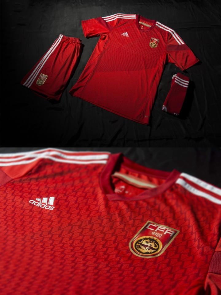 这一季的主客球衣更加突出了长城元素,主场的城墙暗纹并不是完全规律,而客场的城墙纹更是艺术化到了看不太懂的地步(齿轮??)。主客场领口内都加入了五颗红星,“CHINA”的字母分别镶嵌在每一颗星星里。另外,主场球衣的下摆有个非常别致的白色开叉,据说从中国的“旗袍”获得了灵感,难道是为了讥讽国足像一群......??