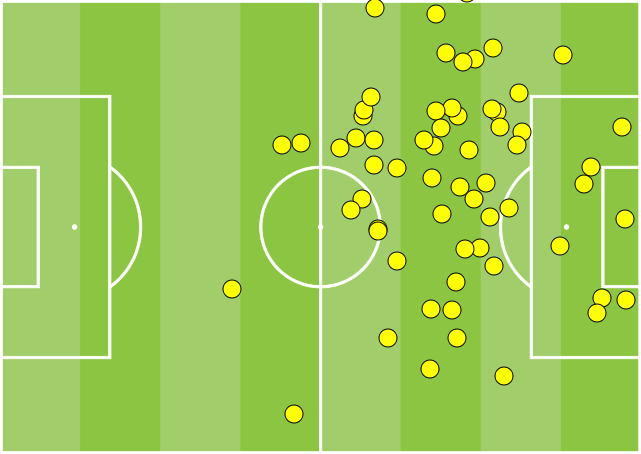 C罗为那个关键的进球做了冲刺,这反而否定了C罗只在对方禁区内活动的想法。他的触球图(在纽卡斯尔18码区总共63次触球中的8次)显示了一个更完整的故事。
