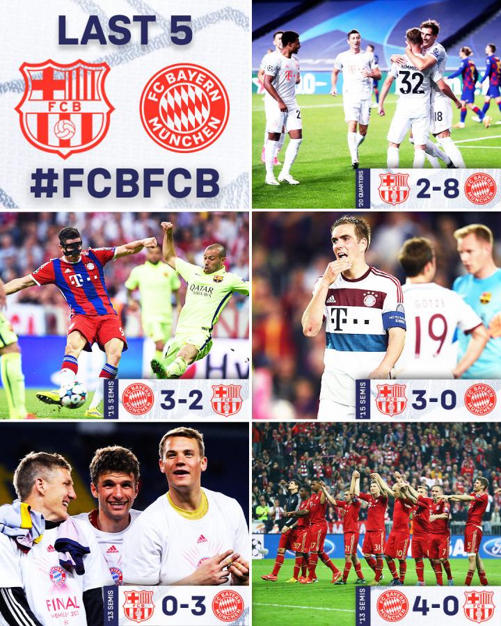 19-20赛季欧冠1/4决赛,拜仁在里斯本用一场8-2的胜利,送给了巴萨欧冠历史上最为惨痛的单回合失利,同时将欧冠中与巴萨的总体战绩变为7胜2平2负。而此前五次做客诺坎普球场拜仁三次取胜,本场比赛南部之星期待第四场做客胜利。
