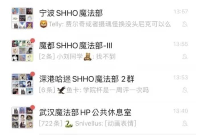 1. 每个微信群的起名逻辑都遵从于地名+SHHO魔法部(SHHO代表强大、荣耀等四种特质),哈迷们进群后就会将备注名修改为×院+英文名;