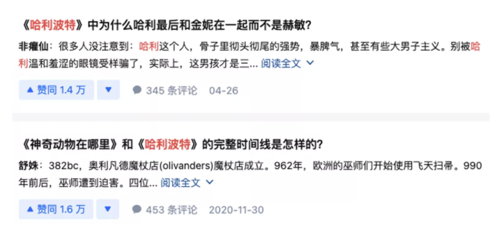 目前知乎上关于哈利·波特的热点讨论中,有“谁是哈利波特历史上最强魔法师”“成年之后再看哈利波特,有哪些和童年不同的认识”这类宏大历史观的问题。