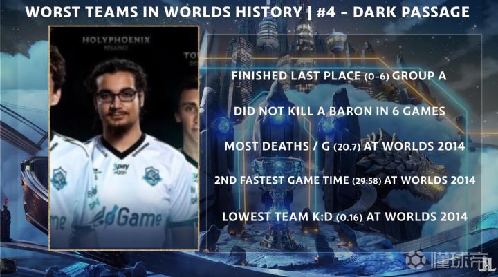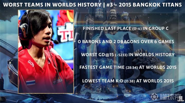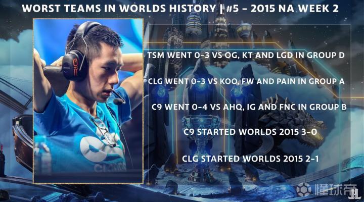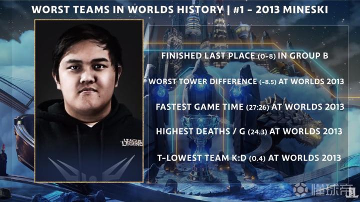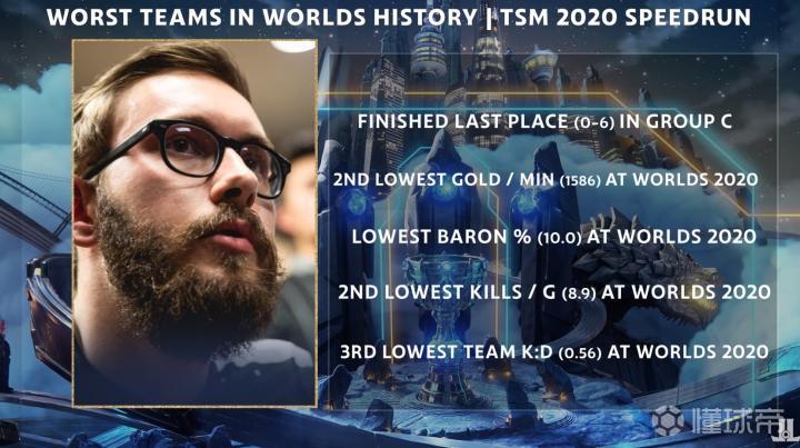 峡谷全视野外媒LeagueOnLock发布了英雄联盟世界赛历史上最糟糕战队的盘点。特别奖:S10 TSM 第一个取得0-6的一号种子;分均经济倒数第二;大龙控制率倒数第一。