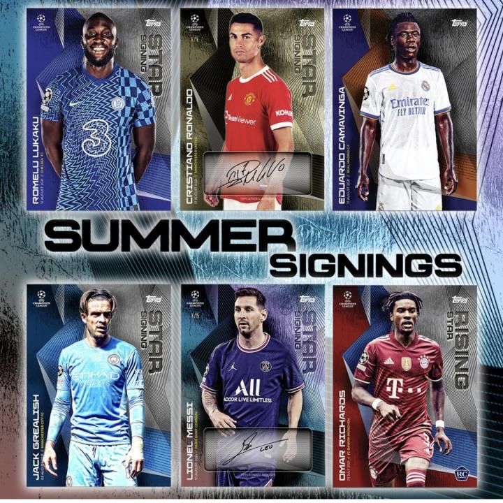 球共鸣-球星卡故事书今日,Topps在其英国官网上正式发售“Summer Signings”主题球星卡,意在纪念这个刚刚见证了足坛绝代双骄双双改换门庭的夏季转会窗。