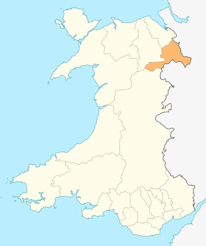 雷克瑟姆(橙色)在威尔士地图上的位置