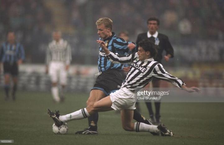 首个赛季,托里切利就为尤文图斯出战了30场比赛,他在球场时时刻刻都在拼命,从没有一分钟懈怠,这也让他得到教练和队友的认可。1993年欧洲联盟杯,尤文图斯杀入决赛。托里切利作为主力出战,斑马军团两回合6比1轻取多特蒙德,家具厂小伙仅仅时隔一年就成为了联盟杯冠军得主,印证周星驰的那句经典台词:人生的大起大落太快,实在是太刺激了。