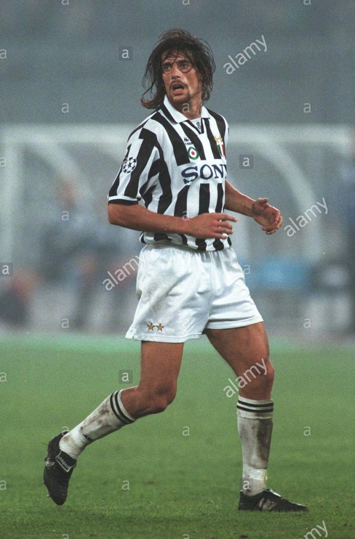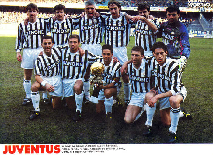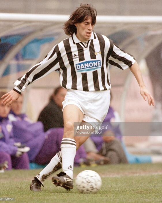 就这样,尤文图斯给22岁的业余球员送来了合同,据说当时托里切利正好遇到一点小尴尬,在家具厂打工数年后,他攒钱买了一辆宝马小轿车,结果刚得瑟了没几天就被偷了。车财两空的托里切利看见那么多钱的合同,自然是毫不犹豫地签了字。于是,在92-93赛季,他和孔蒂,迪诺巴乔,加利亚,一同加盟了意甲豪门尤文图斯。并且马上了成为了球队的主力右后卫,当时托里切利使用的球鞋是意大利品牌diadora的brasil。