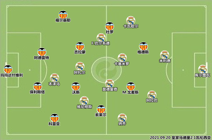 (图)皇马的前场压迫力度不足,瓦伦西亚得以直接发动长传打击米利唐和阿拉巴,替补出场的巴斯克斯也沦为了靶子。