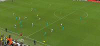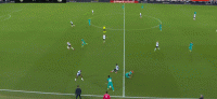 (图)皮球进入中场后,皇马的三名前锋发动进攻的区域比较靠后,中场的跟进支援不够及时,维尼修斯得不到来自边后卫的支持。