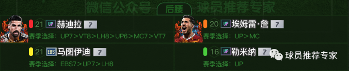大模型后腰赫迪拉是非常推荐的一名后腰,能力是真心全面,对抗、抢断、远射以及手感等方面均属上乘。逆足还有4,确实是非常优秀的六边形战士。赛季选择方面可以选择UP赛季的7卡,价格不算贵。VTR金卡虽然也不错但是价格确实稍高一些,而且获取难度稍大。平民LH金卡也是不错的选择。如果你经济比较吃紧,UP的6卡会比VT和MC7卡稍好一些,价格也比较经济实惠。