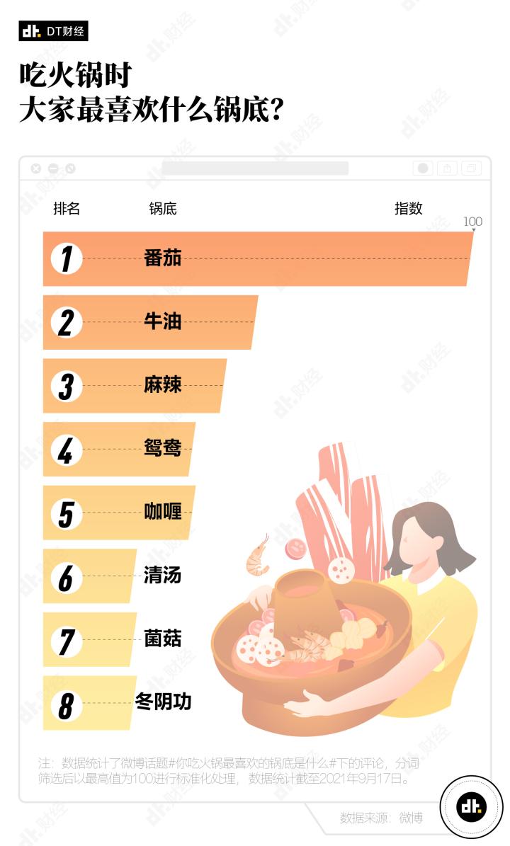 从网友们对火锅锅底的口味偏好来看,番茄锅以绝对优势稳居第一。其次是牛油、麻辣这类川渝火锅的经典味道。