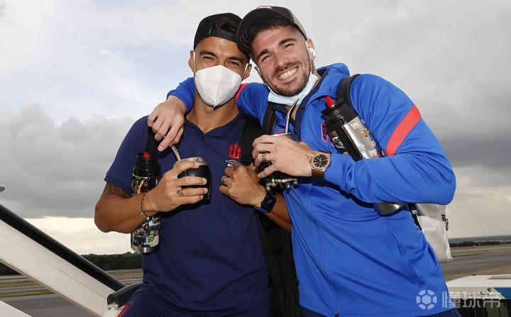 马竞全队启程前往维多利亚备战,球队官方晒出了一张苏亚雷斯与德保罗的“马黛茶兄弟”合照。