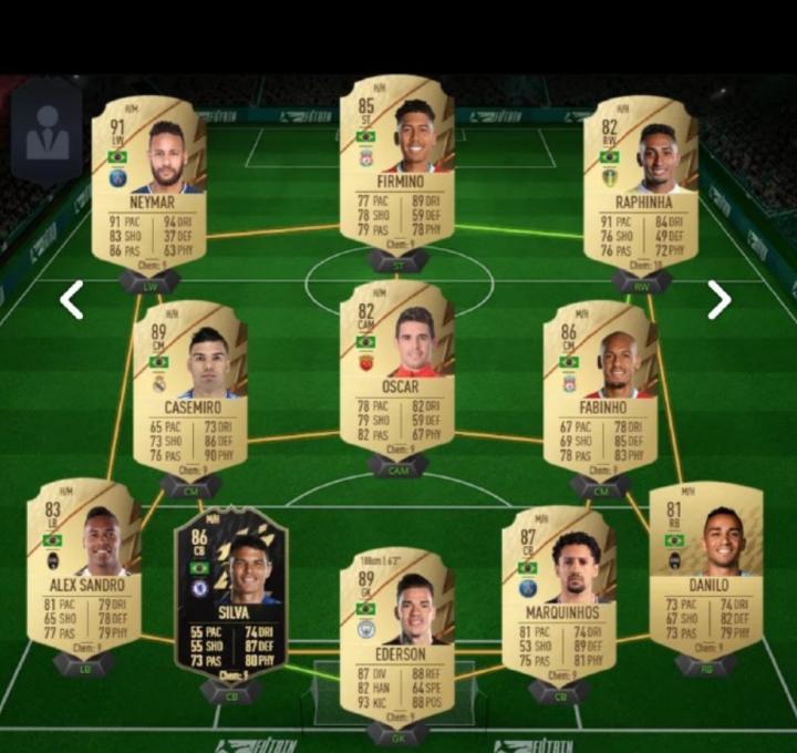 在FIFA 22的一套巴西球员阵容中,奥斯卡与卡塞米罗、法比尼奥搭档中场,同时阵中也还有内马尔、蒂亚戈-席尔瓦等球星。