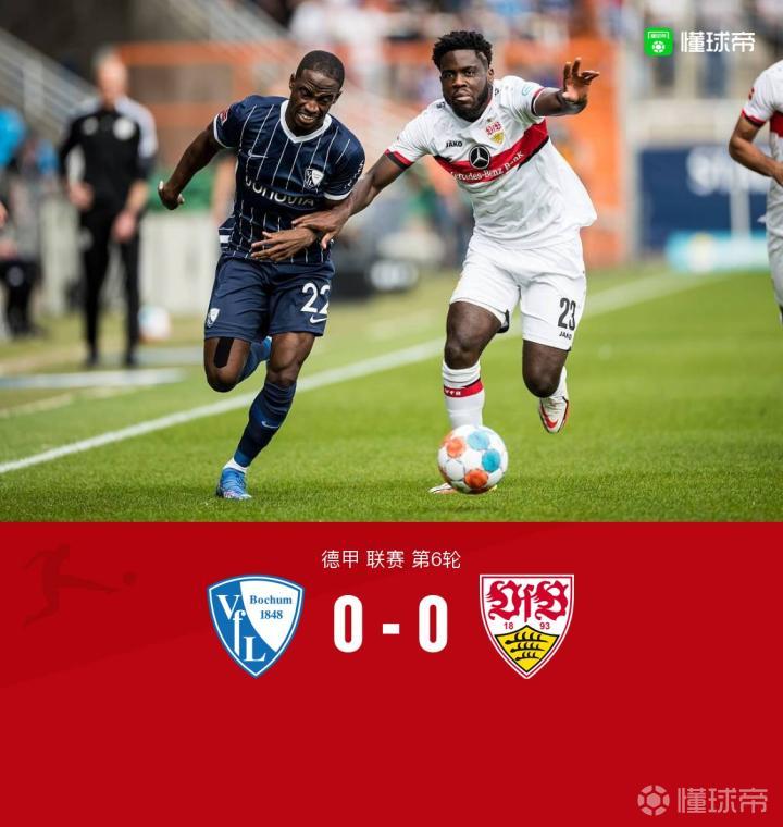 北京时间9月26日21:30,德甲第6轮,波鸿坐镇主场迎战斯图加特。上半场,双方拼抢凶猛,四名球员染黄,波鸿场面占优,但未能取得进球,双方0-0结束;下半场,马夫罗帕诺斯破门被判手球在先,随后双方都没能创造出绝对的得分机会,最终,波鸿主场0-0战平斯图加特,联赛四轮不胜。
