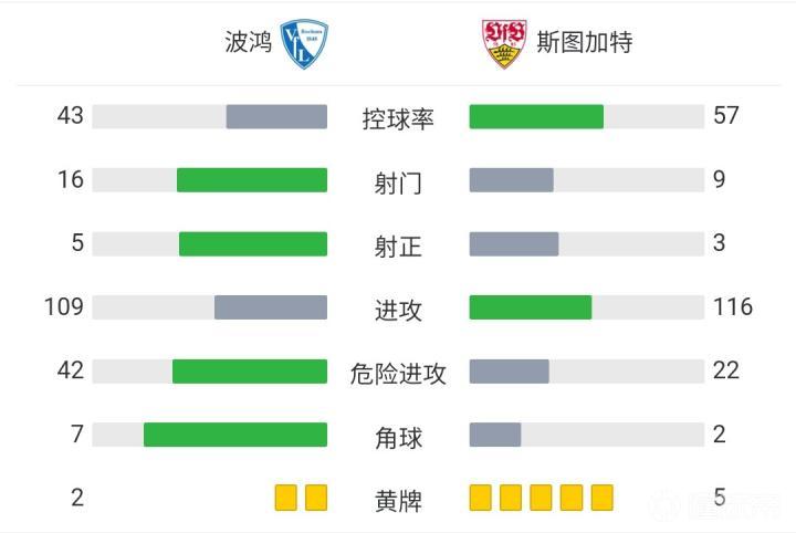 波鸿主场0-0斯图加特,马夫罗帕诺斯进球被吹,全场7黄