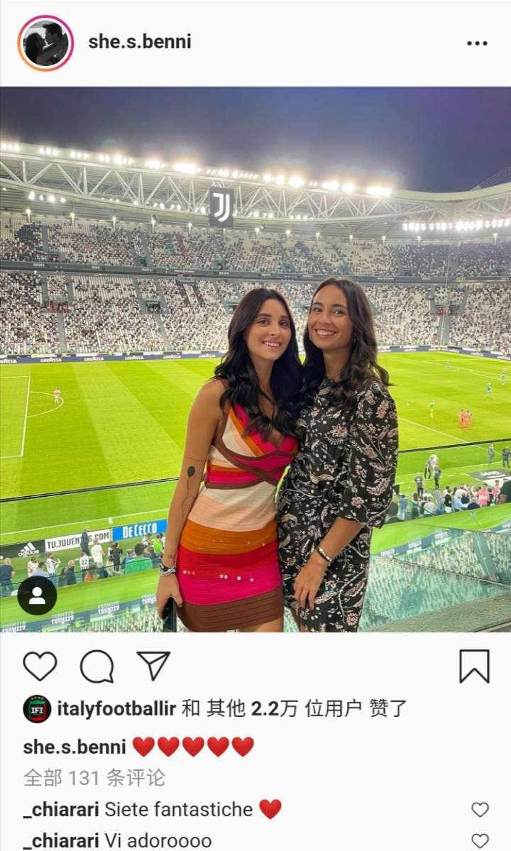 小基耶萨女友贝内黛塔现身球场观赛,为男友助威