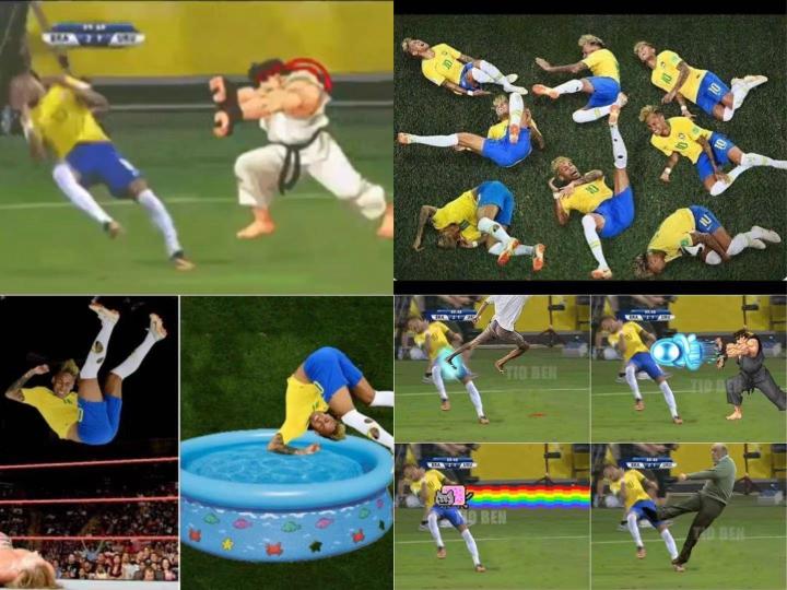 作为足球界中最著名的meme “创造者”之一, 2013年联合会杯, “内马尔跳水“横空出世”,在巴西对阵乌拉圭队的比赛中,在一次内马尔的带球突破时,乌拉圭中场加尔加诺抬起的右手臂打到了这位巴西头牌,结果内马尔腾空而起,跃至空中,飞出半米之远,然后双手捂着脸翻滚,十分痛苦。