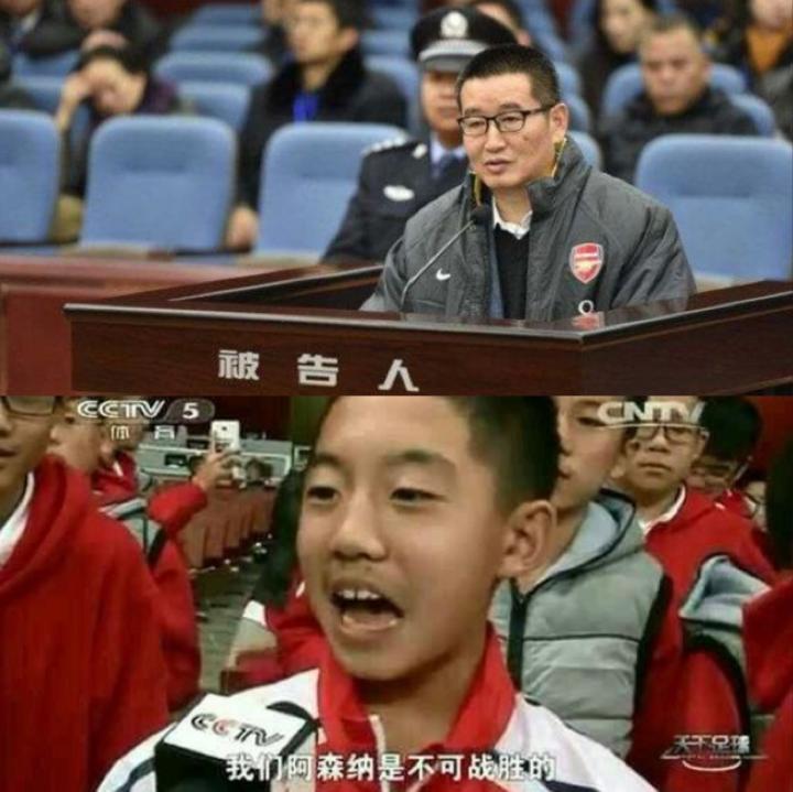 想必很多球迷已经发现了,半年以来,我的每周meme中哪支球队被提及最多,那必然是阿森纳。博主本人还因此被扣上了 “阿森纳黑”, “热刺球迷”这样的大帽子。天下段子共一石,阿森纳独占八斗。阿森纳自二十年前就与meme结下不解之缘,前有贪官身披阿森纳战袍出战法庭,后有响亮口号我们阿森纳是不可战胜的!