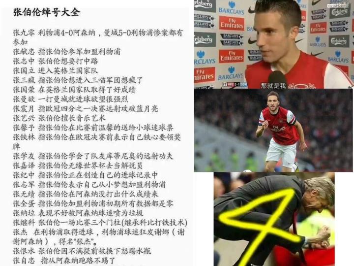 温差签,体检迷宫,四,忠诚队长,最已阵,保温杯,死神拉姆塞,张伯伦外号合集,五年拜仁三年巴萨,上树,温格的外套拉链,等等等等,身为段子之王,阿森纳驰名中外。