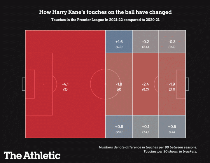 关键点来了。凯恩不会就此彻底哑火,但结合数据,如果想重新坚挺必须大幅提升自己在进攻三区的影响力。
