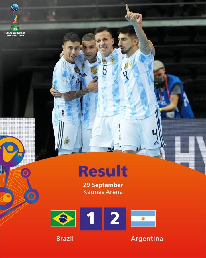 跨越强敌,冲击卫冕!2021五人制足球世界杯半决...穿越黑暗 @懂球帝2021-09-30 03:25跨越强敌,冲击卫冕!2021五人制足球世界杯半决赛,阿根廷队2-1战胜曾5次夺冠的巴西队,连续第二次进入决赛。(图片来源:国际足联及阿根廷队官方)展开更多