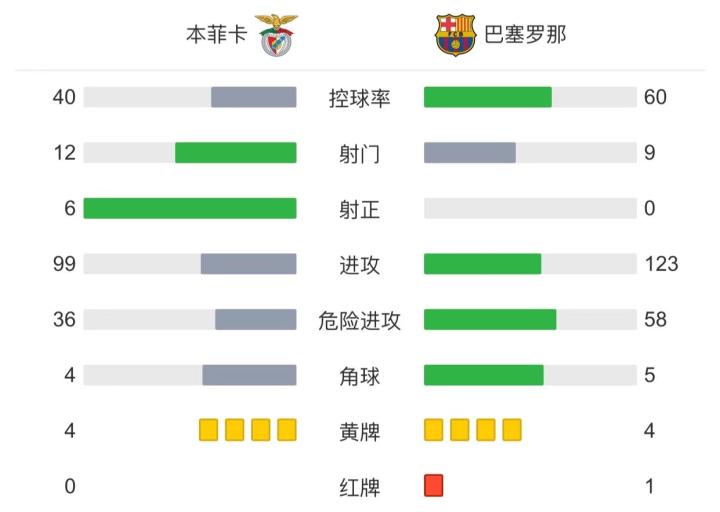 北京时间9月30日3:00,欧冠小组赛第2轮,巴塞罗那客场挑战本菲卡。上半场,努涅斯内切抽射破门,吕克-德容推射被挡出,佩德里远射打偏。下半场,努涅斯打空门中柱,拉法-席尔瓦补射破门,德斯特送点,努涅斯主罚破门梅开二度,加西亚累计两黄被罚下,最终,巴萨0-3本菲卡遭小组赛两连败。