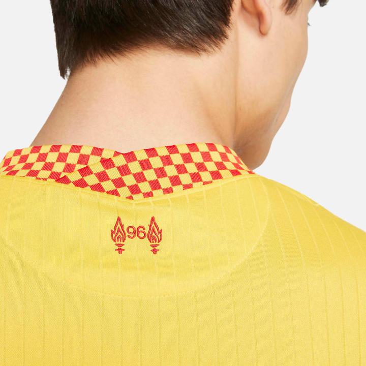 在球衣的颈背面,我们可以看到被永恒火焰包围的数字“96”,这代表着1989年希尔斯堡惨案牺牲的96名球迷。