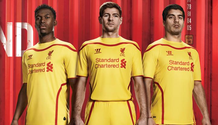 (图)14/15赛季利物浦的客场球衣,当季英超利物浦18场客战8次铩羽而归 ©soccerbible
