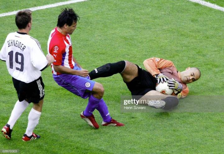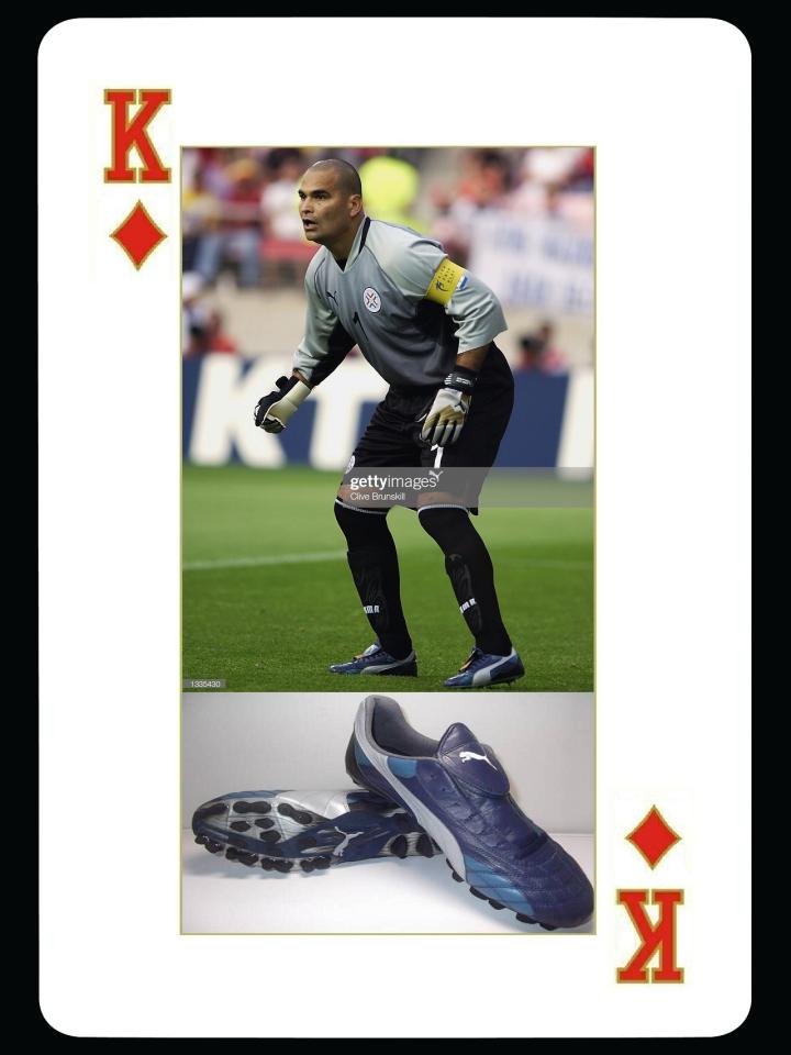 都说巴拉圭和日本关系好,绝非虚言。巴拉圭大哥门神奇拉维特,在2002年世界杯上,他就穿了一双日产的蹴道球鞋。更令人无语的是,他从1998年开始,就一直使用各种日系puma球鞋,而且都是非常经典的款式,甚至还有中山雅史的红钉para mexico,0142和第一代的del mundo。奇拉维特作为当时南美洲乃至全世界最出色的门将,估计是得到了日本puma的赞助,因为他在法甲时期使用的del mundo球鞋上有刺绣,而且他在世界杯上使用日产蹴道是sg版本,应该很少有市售。尽管奇拉维特在球场风风火火,但他长期效力于非主流联赛,也很少有人关注门将的球鞋,所以他给日系puma打广告的事情我也是后来才发现的。