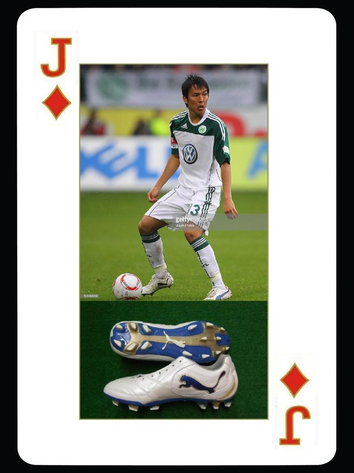 所以,不仅有日本球员将日系puma穿到欧美发扬光大,也有欧美球员会选择日系puma作为自己的战靴。日本球员留洋海外的不少,但真正能算把日本puma带到欧洲,并且发扬光大,可能只有长谷部诚,他在日本国内浦和红宝石效力时期,就一直是使用puma的del mundo,后来他加盟德甲沃尔夫斯堡,del mundo正好赶上换代,日本puma公司还发布了和狼堡球衣颜色一致的白绿色08 sp球鞋。长谷部诚使用的最特别的球鞋是2010年的日产力量猫。在狼堡获得德甲冠军后扬名立万后,长谷部诚不仅成为日本足球的代表人物,也成为了puma全世界范围的代言球星。