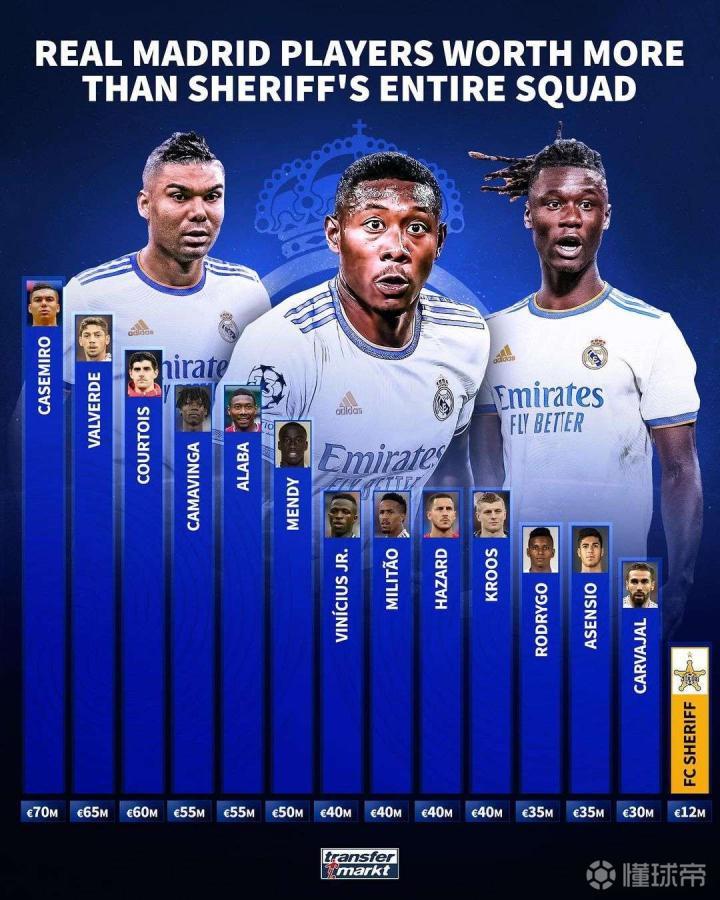 警长全队与皇马球员身价对比图
