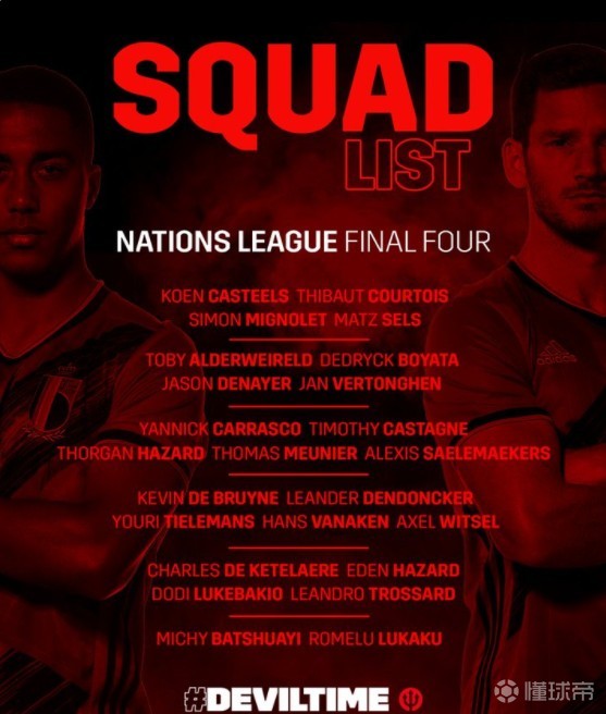 【比利时新一期国家队名单:卢卡库、德布劳内、阿扎尔等人在列】
